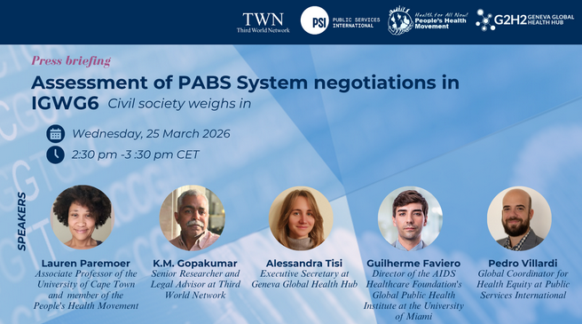 In this briefing, our panellists will brief from the ground in Geneva on the latest developments in negotiations on the Pathogen Access and Benefit-Sharing (PABS) system.