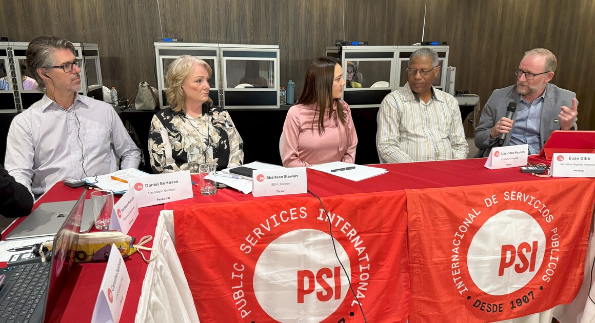 PSI regional secretary for Inter-America, Euan Gibb, emphasized the commitment to strengthen our daily work and regional integration. "We are reorganizing in the face of current threats. Public services and the role of the public sector is at risk. We have to pressure and organize, because governments are not going to solve the problems affecting workers," he said. Gibb recalled that unity and coordinated action are essential: "In Panama, Ecuador, Guatemala, Argentina and the unimaginable case of the United States, where collective bargaining rights for half a million public sector workers have been eliminated overnight; in Quebec, Canada, where our local affiliates recently discovered the provincial government's plans to eliminate collective bargaining rights. This is a widespread situation. Learning from each other's struggles and responding with a collective strategy and being united at this time is urgent."