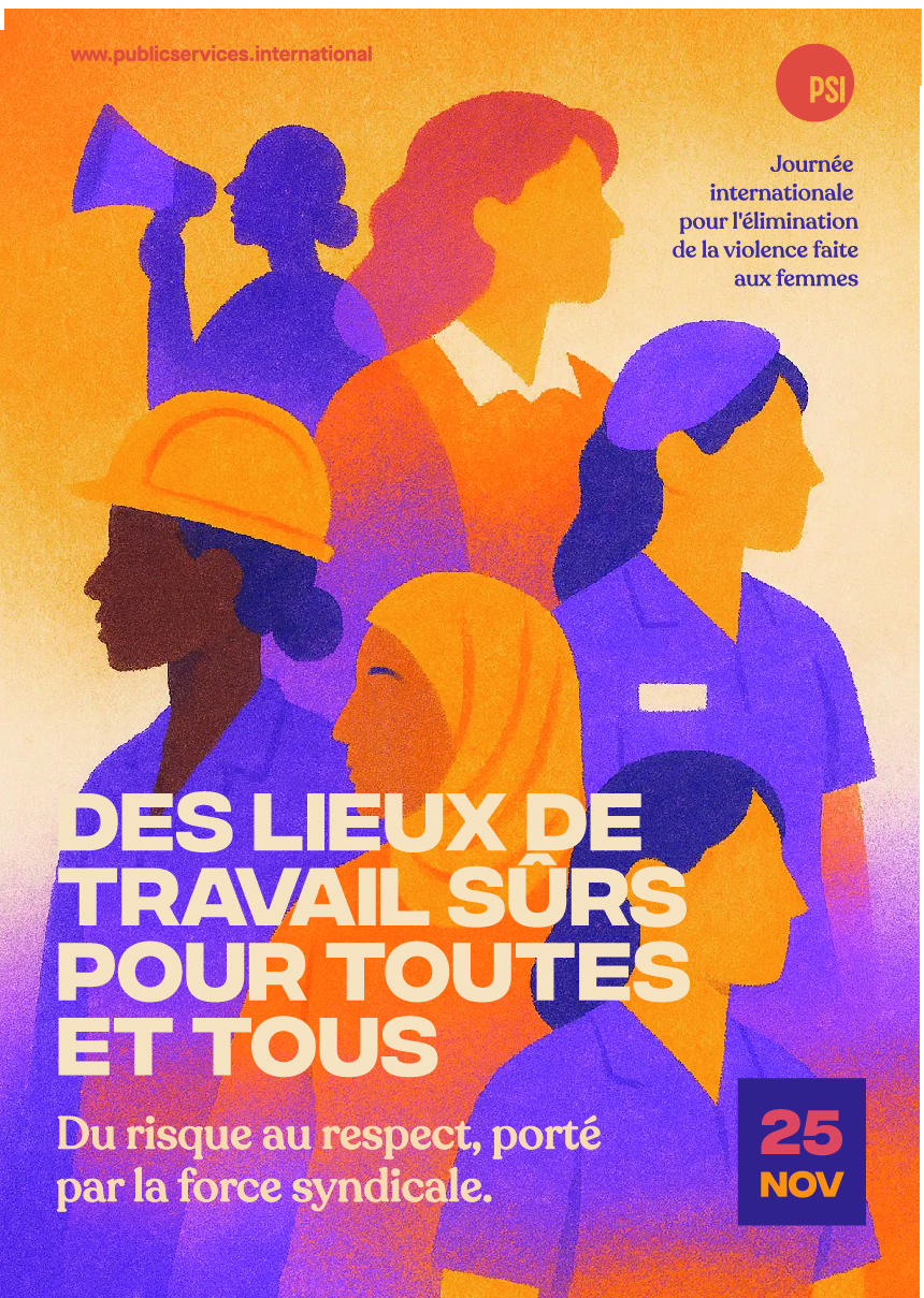 25 novembre, Journée internationale pour l'élimination de la violence à l'égard des femmes Des lieux de travail sûrs pour toutes et tous - Du risque au respect, porté par la force syndicale
