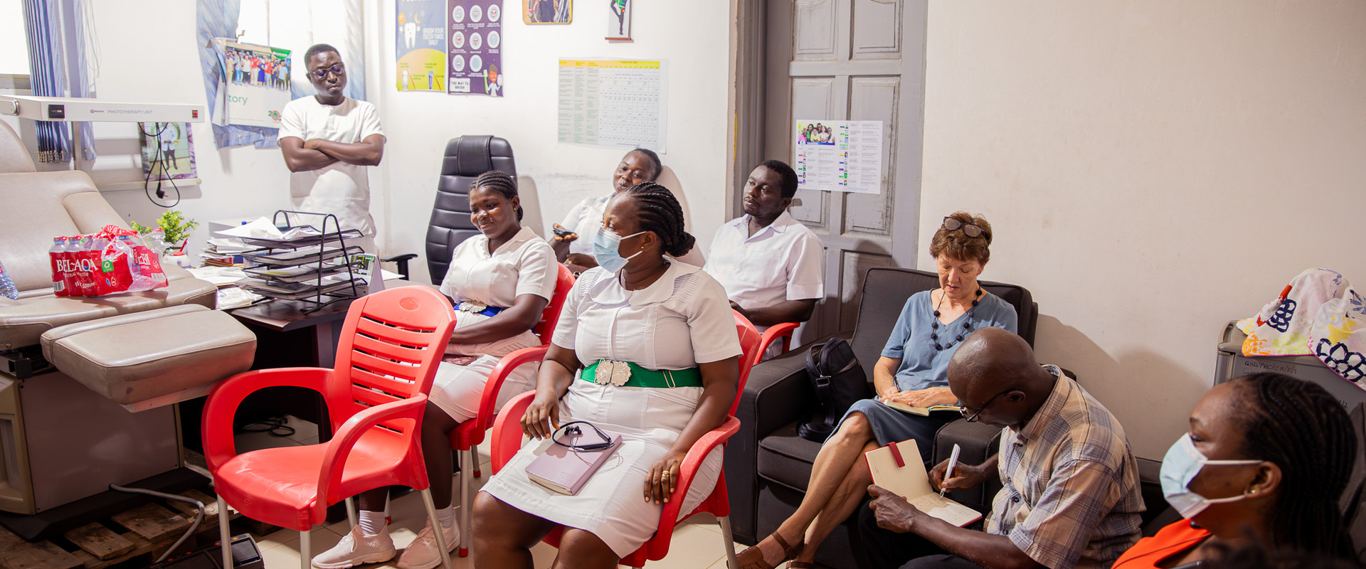 At Sandema Municipal Hospital in the Upper East Region, a midwife made the connection:"In relation to the RCH where we provide maternal and child health services, you can imagine a baby has been brought to you to perform postnatal care, and you the healthcare worker attending to this baby is sweating on the child, it is not acceptable."