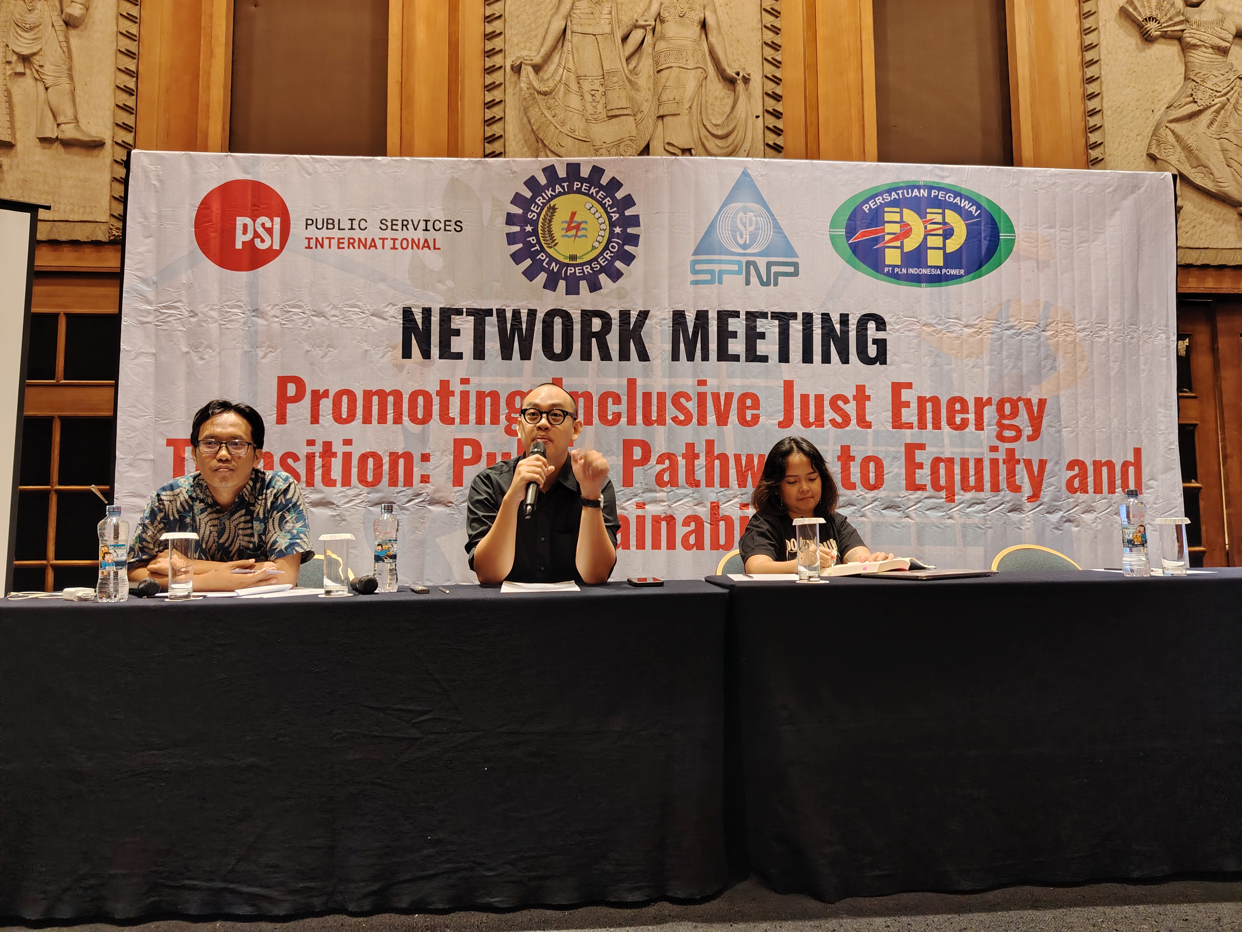 In his opening remarks, Ian Mariano, PSI Sub-Regional Secretary for Southeast Asia, said that Indonesian trade unions have long been at the forefront of defending public services from privatisation. He argued that the struggle is not merely technocratic resistance to policy choices, but a fight to ensure people retain access to safe, affordable, and democratically governed energy. Mariano also stressed that Indonesia has strong grounds to reject transition schemes that rely primarily on private financing, noting that unions have developed alternatives aligned with constitutional principles. “We even have a public energy transition position paper as an alternative to the Just Energy Transition Partnership (JETP). This is part of the strategy to ensure the people maintain sovereignty over energy,” Mariano said.