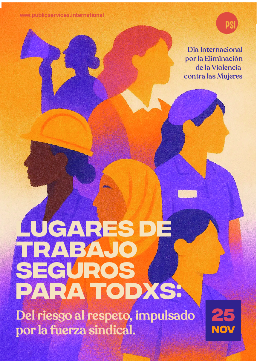 El 25 de noviembre de 2025, el Comité Mundial de Mujeres de la ISP marca el Día Internacional para la Eliminación de la Violencia contra la Mujer impulsando la implementación del Convenio C190 de la OIT en los lugares de trabajo de todo el mundo. Se trata de un llamamiento a los sindicatos de servicios públicos para que adopten medidas concretas para prevenir y abordar todas las formas de violencia y acoso en el trabajo.
