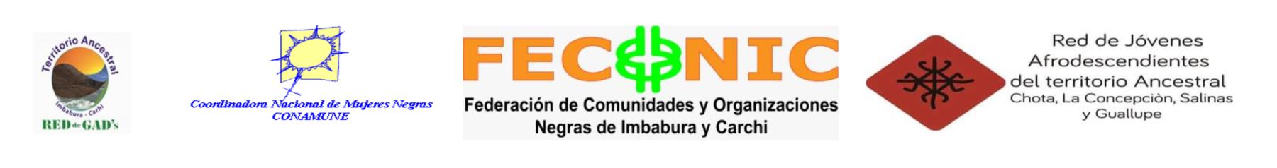 Red de GADs del Territorio Ancestral; Coordinadora Política de Mujeres Negras Capítulo Imbabura y Carchi (CONAMUNE); Federación de Comunidades y Organizaciones Negras de Imbabura y Carchi (FECONIC); RED de Jóvenes Afroecuatorianos del Territorio Ancestral Chota, Salinas, Concepción y Guallupe.