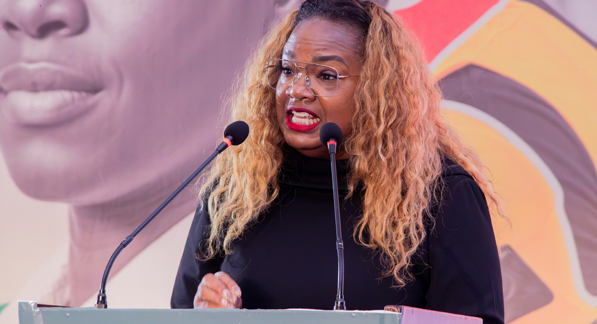 And for me, standing here — as a Black woman, as the President of the Service Employees International Union, and as a descendant of those who were stolen from this soil generations ago — this moment carries a sacred weight.