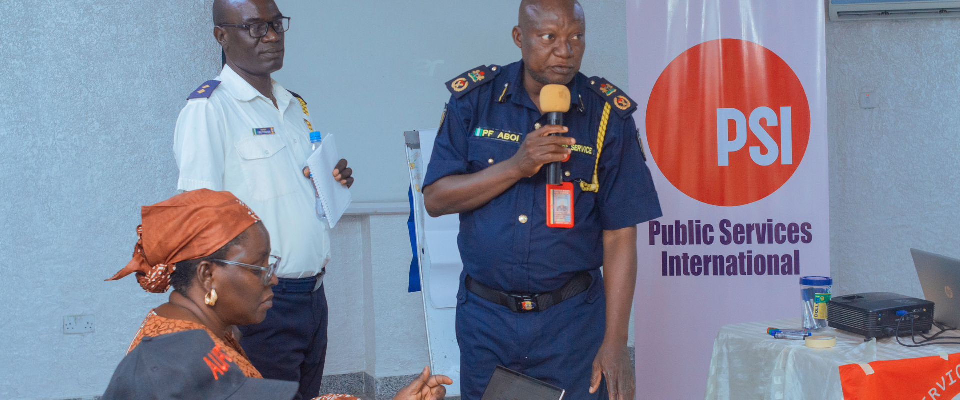 PSI and Union-to-Union supported AUPCTRE in organising frontline workers in the public emergency services sector in Kaduna, Nigeria. To improve the voice of emergency workers in organising, a two-day organising and training workshop took place from 26-27 May, 2025. This is part of the PSI Internally Displaced Persons (IDP) project in Nigeria which is aimed at strengthening the ability of frontline workers in the emergency sectors to have improved capacity to defend their rights and the rights of communities displaced by flooding, insurgency, and other natural or man-made disasters.