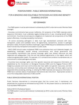 Public Services International is a Global Union Federation of more than 700 trade unions representing 30 million workers in 154 countries. We bring their voices to the UN, ILO, WHO and other regional and global organisations. We defend trade union and workers' rights and fight for universal access to quality public services.